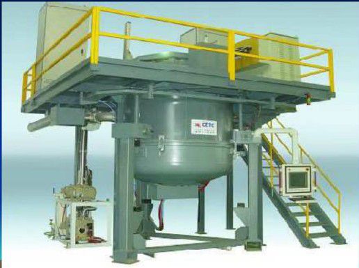 通入氩气作为保护气,使炉内压力基本维持在400-600mbar左右。逐渐增加加热功率,使适应坩埚内的温度达到1500℃左右,硅原料开始熔化。熔化过程中一直保证1500℃左右,直至化料结束。该过程约要20-22h。