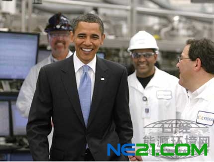 | 视察美国Solyndra工厂的美国总统奥巴马。 Solyndra 已于2011年破产。 |