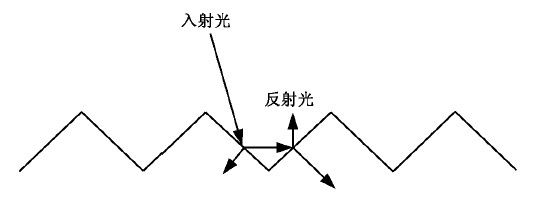 3种光学性质的损失中,硅表面的反射损失最多。通过在太阳电池表面制备绒面可以有效降低太阳电池的表面反射率,入射光在电池表面多次反射延长了光程,增加了对红外光子的吸收(如图3.1),而且有较多的光子在P-N结附近产生光生载流子,从而增加了光生载流子的收集几率;另外,同样尺寸的基片,绒面电池的P-N结面积较大,可以提高短路电流,转换效率也有相应的提高。因此,在减少光的损失方面,电池的织构化技术和减反射技术起着重要的作用。(作者罗玉峰、张发云、廖卫兵)