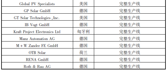 表3.1国外清洗制绒整线设备生产厂商