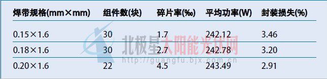 从表五中可以看出,焊带越厚,组件的输出功率越高,封装损失也越低;但焊带增厚,会提高焊带成本,还使得人工焊接时的焊接碎片率有所提高。但若采用自动焊接生产线,使用厚焊带可以有效地降低碎片率,增加组件的输出功率,降低封装损失;长远看来,也有助于控制组件的质量,提高组件的成品率,降低生产成本。