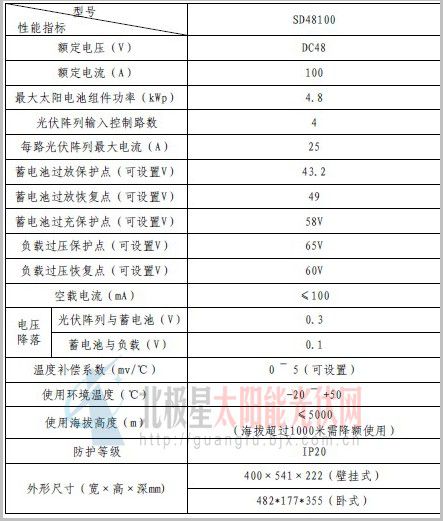 (备注:本系统选用DC48V光伏控制器,太阳电池串列分为4路接入光伏控制器。)