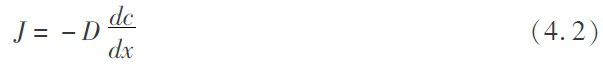 式中,J为扩散通量,D为扩散系数,C为浓度,x为长度。