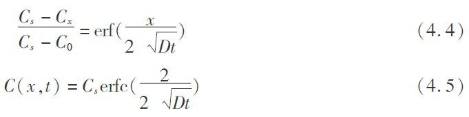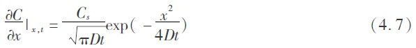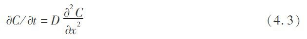 式中,t为扩散时间,J为扩散通量,D为扩散系数,C为浓度,x为长度。