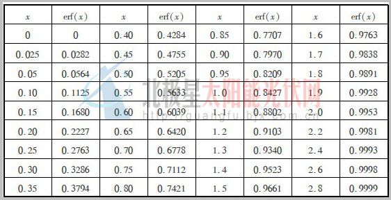 式中,t为扩散时间,x为某点离表面的距离,D为扩散系数,Cs为表面扩散源浓度,C0为物体的原始杂质浓度(假定扩散前的硅片中不存在磷,则C0数值为0),Cx为某点经过t时间扩散后的杂质浓度,erf(x)为误差函数(如表4.1所示),erfc(x)为余误差函数,有erfc(x)=1-erf(x)。