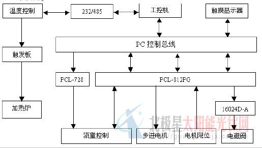 自动控制时,控制单元经PCL-726板卡送出控制信号驱动16024D-A固态继电器,再由16024D-A固态机电气驱动相应的电磁阀,经PCL-726板卡送出D/A信号控