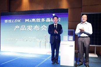索比光伏网讯:5月16日晚,光伏" title="光伏新闻专题">光伏企业赛维LDK高效多晶硅片M2发布会在上海世纪皇冠假日酒店举行。新余市高新技术产业开发区管委会主任任光明、上海交通大学教授、上海市太阳能学会理事长崔容强、中科院研究员、中国太阳能学会理事王文静博士、赛维LDK董事长兼首席执行官彭小峰、总裁兼首席运营官佟兴雪以及各客户代表出席了发布会。