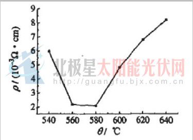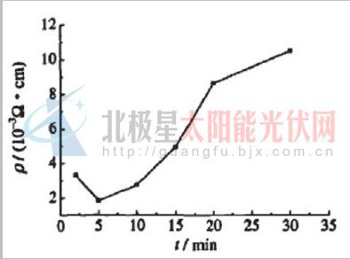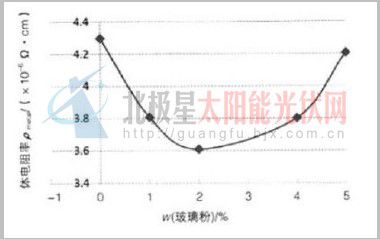 当玻璃粉含量不变时,电阻率在一定范围内随着银粉的含量逐渐增加而降低。当银粉含量过大时,电阻率反而升高。因为银粉含量过大,玻璃粉含量不变,即浆料的固体含量过大,有机载体含量过低,那么浆料的粘度过大,流平性差,丝网印刷时,不易形成连续致密的银膜,故电阻率过大。