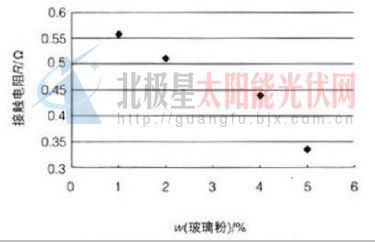 在0-5%范围内,玻璃粉比例的增加对于Ag在浆料与电池发射极界面处生成再结晶颗粒和形成隧道导电通道有益。