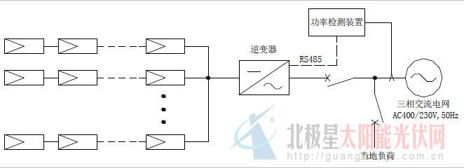 系统安装逆功率检测装置,与逆变器进行通讯,当检测到有逆流时,逆变器自动控制发电功率,实现最大利用并网发电且不出现逆流,如图8所示。