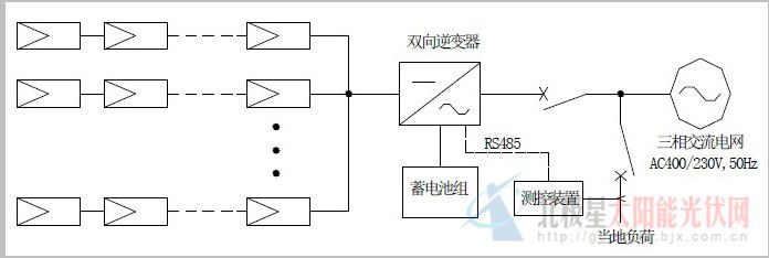 采用双向逆变器+蓄电池组,实现可调度式并网发电系统,如图9所示。