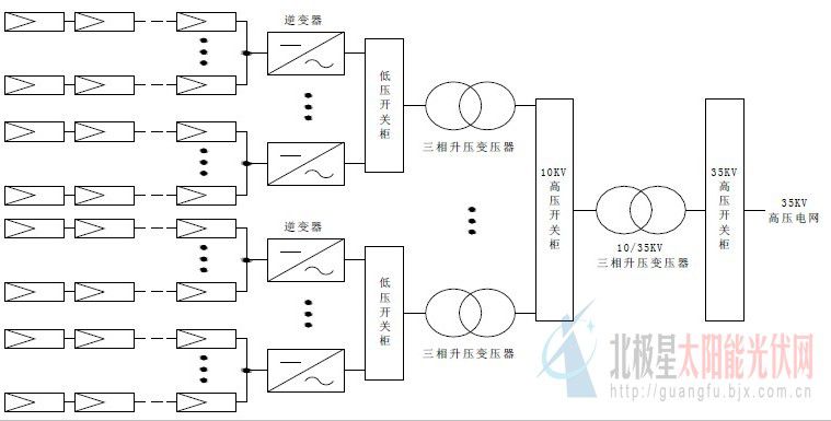 并网系统通过升压变压器接入10KV或35KV高压电网,升压并网系统应采用单独的上网变压器,向上级电网输电。