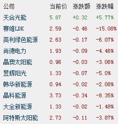 北京时间5月25日早间消息,受5月中国PMI值大幅回落影响,周四i美股中概太阳能指数(SLR10)下跌2.44%,成分股多数下跌,赛维LDK跌幅领先,跌幅15.08%;晶科能源跌8.35%;英利绿色能源跌6.07%;昱辉阳光跌5.0%;尚德电力、阿特斯太阳能、晶澳太阳能跌幅超3%;天合光能逆市涨5.77%。