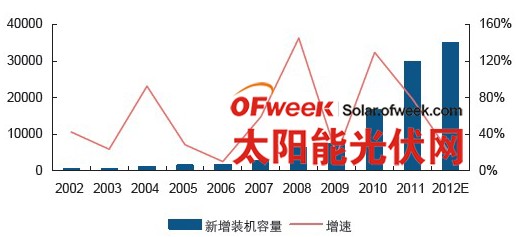 在欧债危机和欧洲传统光伏装机大国大幅下调政策补贴的冲击下,全球光伏行业正在经历需求可能大幅减少的严峻挑战。但是受益于光伏组件价格的持续走低,以及以中国、日本、美国等为代表的新兴光伏装机需求释放,预计2012年全球光伏装机容量将超过35GW。
