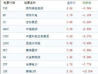 彭博中美股市指数(CH55BN)中交投最活跃的在美上市的中国企业已连续第四个星期下跌,这是六个月以来下跌周期最长的一次。全球第二大硅片制造商LDK的股价跌至历史最低点。而全球最大的光伏制造商尚德电力的股价则跌落至七个月以来最低水平。