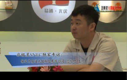 索比光伏网讯:北极星太阳能光伏" title="光伏新闻专题">光伏网上海SNEC太阳能光伏展独家专访保定市易通光伏科技有限公司总经理王珂。