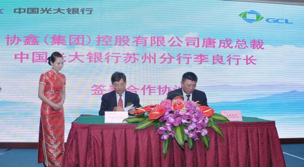 中国光大银行苏州分行与协鑫集团约定将本着“长期合作、强强连手、互利共赢、共谋发展”的原则,进一步深化、提升双方的战略合作,支持双方战略重点的实施和业务发展,建立长期的战略合作关系。