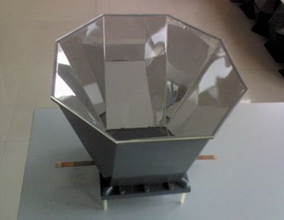 新出现的技术思维,是将4倍聚光改为6倍聚光,但光漏斗造价并不显著增加。下面是用无光像聚光理论设计的6倍聚光漏斗:
