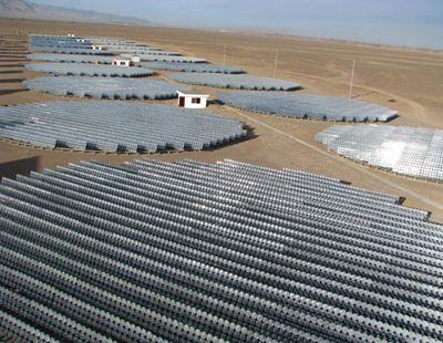 (5)上述“第三代”光伏发电技术,或“绿色”发电技术,已有一个演示的“窗口”,也就是在甘肃省武威地区已建成的“4倍聚光+转盘式跟踪”,峰值功率为1兆瓦的小型光伏电站。