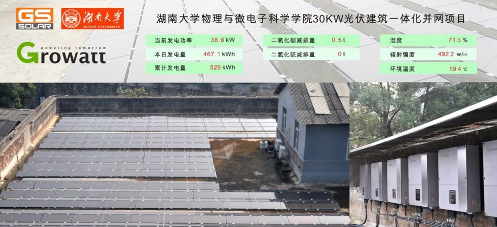索比光伏网讯:从“千年学府”湖南大学传来消息,由古瑞瓦特新能源提供的Growatt逆变器在湖南大学光伏" title="光伏新闻专题">光伏发电项目中保持高效运行,性能稳定!