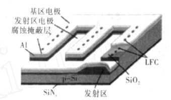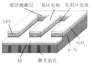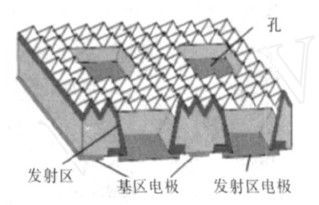 与EWT电池一样,VEST电池也是利用小孔来传递载流子,只是这些小孔是采用化学腐蚀方法制作的,并且还能起到剥离衬底与外延层的作用。电池正面消除了电极的遮光损失,有效面积损失仅取决于孔的大小(约为1%),可以获得较大的电流密度。载流子由电池中呈点状分布的小孔收集后,沿孔的内侧流通到背面的电极上,其流通距离比常规电池长,因此在进行电池设计时,应当考虑串联电阻问题,换句话说,VEST电池的填充因子在很大程度上取决于孔的几何分布。三菱电机制作的厚度77μm、面积96cm2的VEST电池,其效率达到16%[25]。