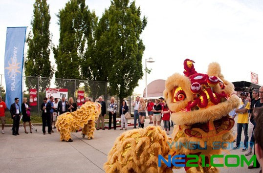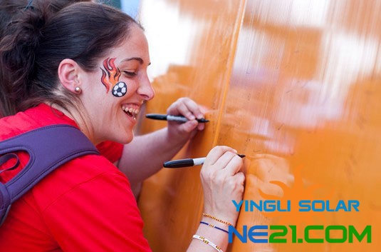 看台外中国英利的狮子舞的威风八面,使得众多球迷和客户在我们的活动区流连忘返,同时英利的留言板供英利的客户为英利以及自己喜欢的球队留下美好祝福。