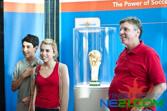 看台里英利携2014年FIFA冠军奖杯再次高调亮相美国,因为2014年的世界杯是在巴西举办,也使得此次大力神杯降临美国与巴西国家队比赛现场显得意义非凡,着实引起了不小的轰动。此外英利还展示了与足球的结缘之路以及英利利用足球和太阳能为世界带来的光明和能量。活动区人头攒动,相信美国和巴西的两国球迷会对YINGLI SOLAR 印象更加深刻。