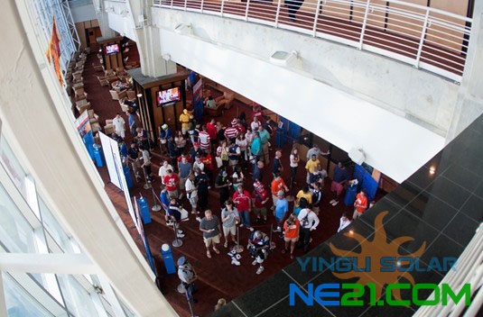 比赛开始后球场里英利蓝色的广告牌十分耀眼,“中国英利”“YINGLI SOLAR” “GO SOLAR GO YINGLI GO US”的口号轮番轰炸,引得现场的客户和球迷尖叫声不断。