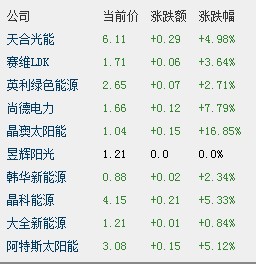 受到晶澳强劲财报及预期提振,中国太阳能板块集体上涨,i美股中概太阳能指数涨5.63%,报212.44点;尚德电力涨7.79%;晶科能源涨5.33%;阿特斯太阳能涨5.12%。