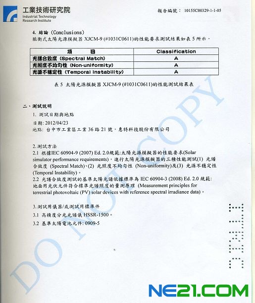 陕西众森光伏XJCM-9率先获得台湾工研院AAA认证