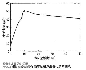 HIT电池之所以能取得这样高的光电转换效率是由于在太阳电池的p-n结中插入一个本征缓冲层(bufferlayer),该本征缓冲层对Si片表面的钝化作用使其界面特性得以改善。少子寿命是钝化效果的直接反映,理论证明少子寿命越高,太阳电池的短路电流、开路电压也会越高。因此开展对本征非晶硅薄层钝化后硅片少子寿命的研究是制备高效HIT电池的前提和关键。