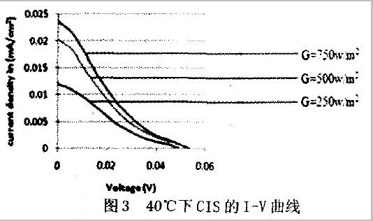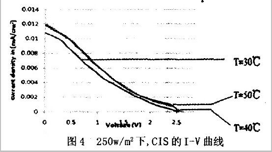 如图3、图4所示,cIs在40℃时,光照强度对电流的影响比对电压的影响要显著一些。当温度超过40℃时,曲线近似重合。