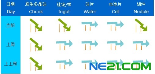 世纪新能源网讯,根据(光伏市场动态第2012年23周)数据显示,本周国内光伏市场多晶硅、硅锭、硅棒、组件价格持续下探。其中,本周国内硅料价格小幅下跌【均165¥/KG 跌3.03%】,数据显示国内形势仍不乐观,厂商反映本周出货无明显变化,市场回归期仍需等待。