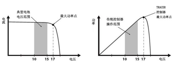 由于传统控制器并不总是在太阳能光伏阵列Vmp时运作,这样能量就被浪费了,这些能量本来是可以用来为蓄电池充电并给系统负荷提供电力的。蓄电池电压和太阳能光伏阵列的Vmp之间的差异越大,能量被浪费的就越多。Tracer 将始终在最大功率点运行,与传统的控制器相比减少了能源浪费。