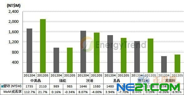 5月份台湾太阳能厂营收表现