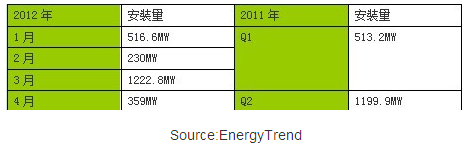根据德国联邦网络局最新出炉的数据,2012年4月份德国太阳能安装量为359MW,EnergyTrend新能源事业处分析师黄公晖就此数据表示,为了抢在补贴再度削减法案出台前达成安装,预期5月和6月德国太阳能安装量将大幅增长,整个上半年安装量将超过4GW。