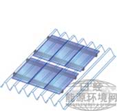 | 重合式 用金属配件固定在连接主体和金属板的固定架的螺栓上 | 缝接式 用金属配件卡住顶部重合部分 |