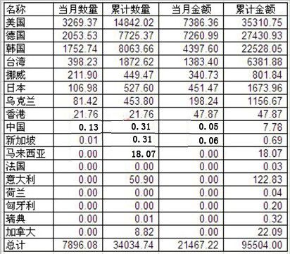 2012年5月多晶硅分国别进口情况(单位:万美元,吨)数据来源:硅业协会