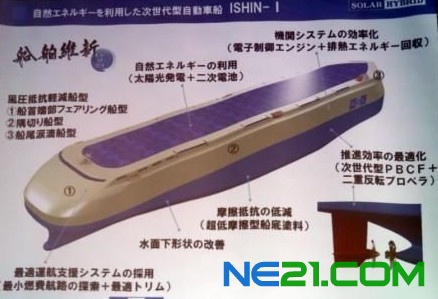 三家日本企业利用太阳能开发的混合动力汽车运输船“EMERALD ACE”号,近日在三菱重工神户造船厂向媒体公开。这艘全长约200米、宽约32米的汽车运输船,可装运6400辆小型汽车。