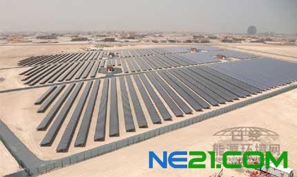 | 建于阿拉伯联合酋长国(UAE)马斯达尔城的百万瓦级太阳能发电站。设置量达到10MW。(照片:尚德电力日本公司) |