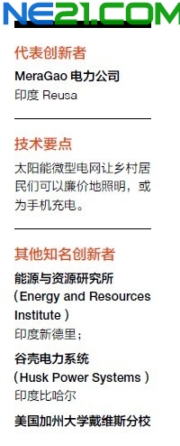 去年夏天,Mera Gao 电力公司部署了第一个商业性的微电网,此后又有八个村庄加入了进来。在得到了美国国际开发署(U.S. Agency for International Development)30万美元的资助后,该公司计划于今年再完成40个村庄的微电网架设工作。它同时也在鼓励其他企业进军印度市场,提供离网型可再生能源。世界资源研究所(World Resources Institute)估计,印度离网型可再生能源市场的规模约为每年20亿美元。该研究所是总部位于华盛顿的一个智囊团。