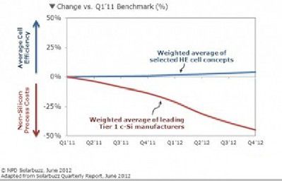 索比光伏网讯:2012年7月4日根据最新的NPDSolarbuzz光伏" title="光伏新闻专题">光伏设备季度报告,降低成本仍是主要晶硅光伏厂商在2012年坚持的首要选择。