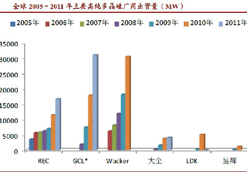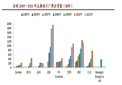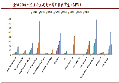 索比光伏网讯:2005年是光伏新生产业最繁荣的一年,而2011年是光伏行业最艰难的一年,欧债危机,产能过剩,主要光伏市场德国、意大利也大范围的降低光伏补贴。无疑是给惨淡的光伏产业雪上加霜。小编在这里为读者统计了2004年到2011年这几年有关多晶硅、硅片、光伏电池片、光伏组件厂商出货量大比拼。