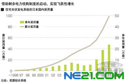 在日本,住宅光伏发电之所以发展迅速,于2009年11月开始实施的剩余电力收购制度发挥了很大作用。该制度规定的收购价格为1千瓦时48日元,大约相当于普通家庭电价的2倍左右,而且,于2005年一度中断的政府补贴也在2008年重新恢复,由此设置者的购买热情高涨。
