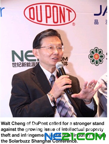 杜邦也进一步捍卫智慧财产权,郑宪志表示,杜邦无法忽视任何侵权行为,并将积极追诉在太阳能产业供应链中,有关杜邦太阳能导电浆料的智慧财产权被侵犯之处。