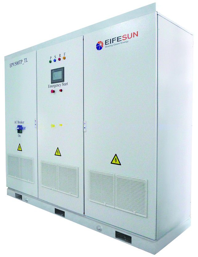 EPV500TP_TL是一款专为光伏电站系统设计、高效率、高可靠性、高度的复杂环境适应能力的500kW逆变器。最高转换效率达98.6%,欧洲效率98.3%。该产品采用模块化并联设计,可有效提高发电量及保证整机的可靠性。先进的SVPWM和MPPT控制,可以最大程度减少系统损耗,使得整个系统效率在全范围内达到最大化。它拥有的低压穿越功能、完善的保护功能、并具备零电压穿越功能、多种语言显示和多种通讯接口,使之能适用于各类大型光伏电站。