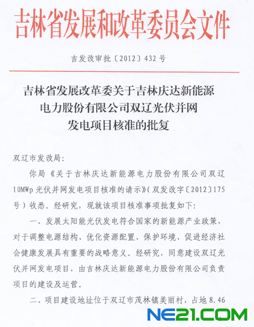 吉林庆达新能源电力股份有限公司是吉林庆达集团下属的子公司,成立于2008年5月,位于吉林省四平市铁东区烟厂路1118号,吉林庆达致力于晶硅太阳能电池制造,光伏发电系统和产品应用工程的方案设计与建设,吉林庆达将力求为用户提供最优质的产品与服务。