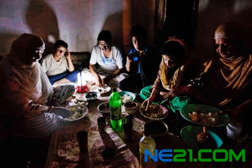 停电大家在黑暗中享受晚餐