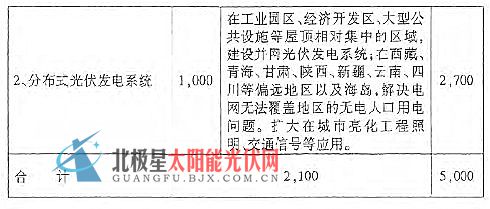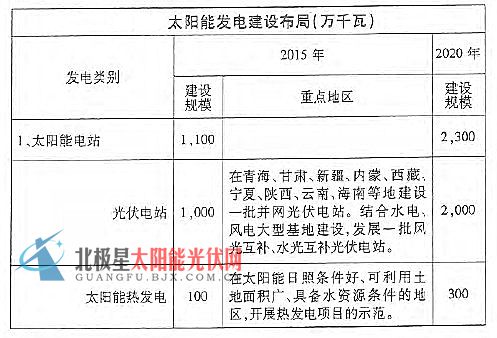 按照集中开发与分布式利用相结合的原则,积极推进太阳能的多元化利用,鼓励在太阳能资源优良、无其它经济利用价值土地多的地区建设大型光伏电站,同时支持建设以“自发自用”为主要方式的分布式光伏发电,积极支持利用光伏发电解决偏远地区用电和缺电问题,开展太阳能热发电产业化示范。加快普及太阳能热水器,扩大太阳能热水器在城市和乡镇、民用和公共建筑上的应用,在农村地区推广太阳房和太阳灶。