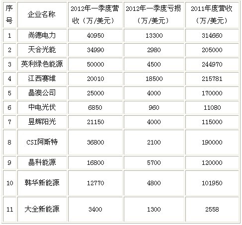 也就是说,上述10家光伏企业仅一季度就亏损了6.12亿美元。